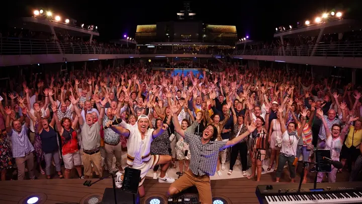 Gemeinsam mit Giovanni Zarrella und Robbie Williams standen wir vor 15.000 Menschen auf der Bühne in Malaga — bei der großen Taufe der Mein Schiff Relax von TUI Cruises. Diese Energie bringen wir zu jedem eurer Events.